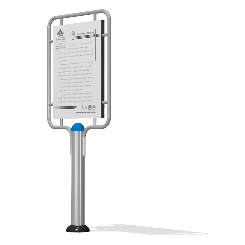 Panel informativo Descripción Tubería:Tubería galvanizada con tratamiento de zinc. Grosor de 3mm. Diámetro del tubo principal 140 mm. Pintura: Pintura en Poliuretano (PU) con protección U.V. Medidas: 780x140x1850mm Función: Informativa. Ficha Técnica Añadir a la lista de consulta SKU: GYX-A45 Categoría: Circuito Básico Productos relacionados Añadir a la lista de consulta Elevador de brazos AD Añadir a la lista de consulta Columpio BT Añadir a la lista de consulta El volante AD